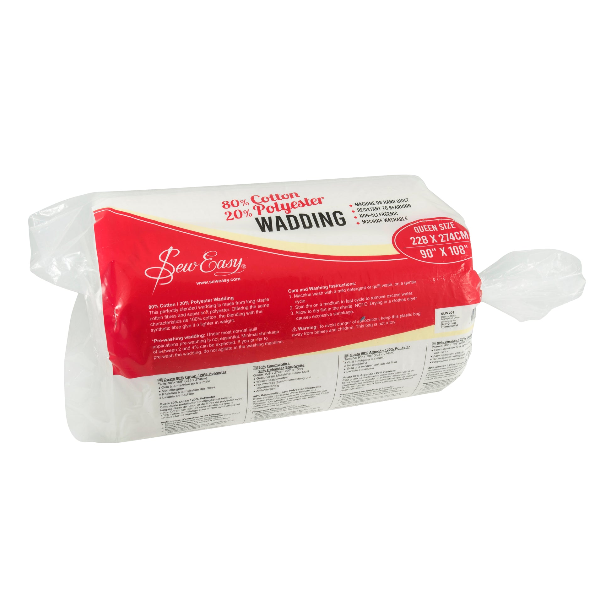 This premium batting is expertly crafted with 80% cotton and 20% polyester fibres, creating a plush and breathable feel. It is needle punched for a cohesive construction and has a shrinkage of 2-4%, making it perfect for quilting. With a generously sized queen quilt (228.6 x 274.3cm) and machine washable up to 40°, this batting guarantees lasting quality and comfort.